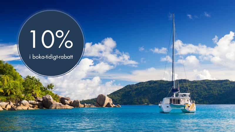 Nu får du 10% i boka tidigt-rabatt på din nästa segelkryssning eller båthyra utomlands. Vi hjälper dig gärna att hitta rätt resmål – från pittoreska hamnar i Kroatien till tropiska vågor i Karibien.
